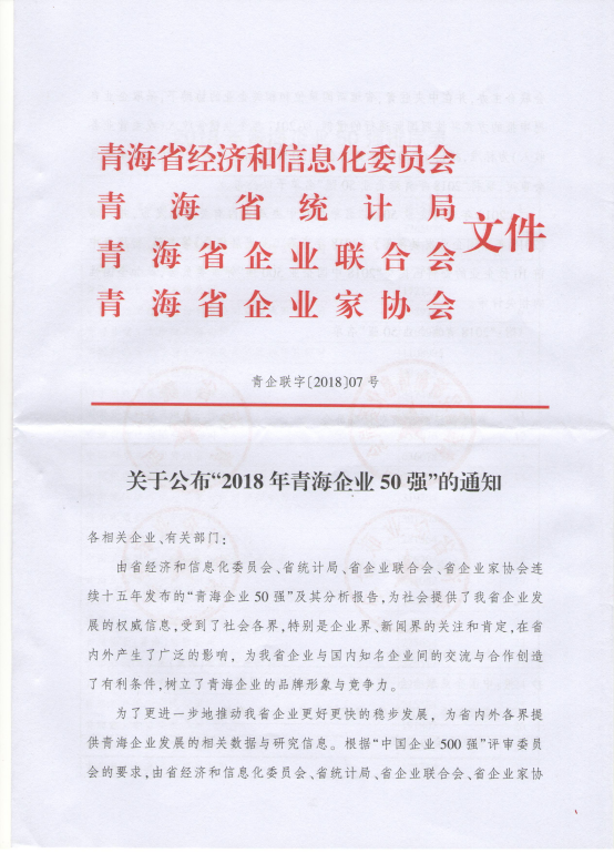 (集團(tuán)總經(jīng)辦?訊 戴淑琳/文)2017年,青海物產(chǎn)緊緊圍繞"穩(wěn)中求進(jìn)"工作總基調(diào),全面落實五大任務(wù)新措施,主動適應(yīng)經(jīng)濟(jì)發(fā)展新常態(tài),積極融入"一帶一路"建設(shè)機遇期,全力以赴創(chuàng)收增效,全力推動項目建設(shè),全力促進(jìn)轉(zhuǎn)型升級,保持了營收穩(wěn)步增長、效益穩(wěn)步提升、項目平穩(wěn)推進(jìn)、結(jié)構(gòu)不斷優(yōu)化的良好態(tài)勢。近日,青海省經(jīng)濟(jì)和信息化委員會、省統(tǒng)計局、省企業(yè)聯(lián)合會、省企業(yè)家協(xié)會聯(lián)合印發(fā)了《關(guān)于公布"2018年青海企業(yè)50強"的通知》(青企聯(lián)字〔2018〕07號),青海物產(chǎn)再次入選青海企業(yè)50強,名列第12位。