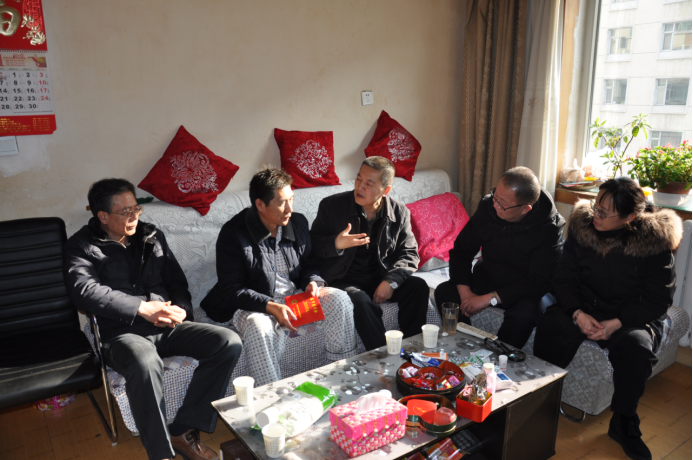 在退休老黨員、老勞模毛敏生和馮芳才家中,王玉輝書記與他們拉起家常,詢問他們的身體狀況和家庭情況,感謝他們?yōu)榍嗪N锂a(chǎn)發(fā)展所做出的努力和貢獻(xiàn),并代表集團(tuán)黨委送上組織的關(guān)懷和美好新春祝福。