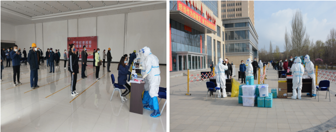 在疫情防控緊要時期,主動配合落實核酸檢測等防控措施。多頻次聯(lián)系大通縣疫情防控指揮部及北川園區(qū)管委會,于4月14日、4月17日開展兩輪核酸檢測行動。為做好本次核酸檢測工作,公司黨政領(lǐng)導(dǎo)班子高度重視,科學(xué)謀劃,與相關(guān)單位溝通銜接后,連夜加班在園區(qū)空曠區(qū)域設(shè)置檢測點,方便核酸檢測工作;同時根據(jù)公司生產(chǎn)經(jīng)營實際,公司財務(wù)審計部、實業(yè)開發(fā)部人員、供銷部負責(zé)同志協(xié)同公司所屬各單位,密排人員在崗、離崗、休班情況,提前編制完成人員信息統(tǒng)計及分組排序表;歷經(jīng)全員密切配合,兩次共采集核酸檢測樣本2093個,保證了篩查應(yīng)檢盡檢、無一遺漏,及時排除風(fēng)險。