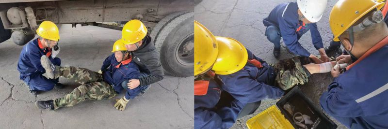 機(jī)械傷害是安全生產(chǎn)人身傷亡事故中最常見(jiàn)的事故類(lèi)型,組織職工開(kāi)展應(yīng)急演練,是避免和減少此類(lèi)事故發(fā)生的重要途徑。為確保此次演練取得預(yù)期效果,配送公司裝卸作業(yè)部提前制定方案,成立安全小組,明確職責(zé)分工,并組織參演人員進(jìn)行演練前培訓(xùn),細(xì)化各環(huán)節(jié)步驟。此次演練模擬作業(yè)人員在庫(kù)區(qū)作業(yè)吊裝貨物時(shí),因自身麻痹大意導(dǎo)致被貨物撞擊致傷,造成機(jī)械傷害的場(chǎng)景。在警戒組、應(yīng)急救援組、檢查組、后勤保障組等各參演人員的密切協(xié)作下,圓滿(mǎn)完成了此次演練任務(wù)。