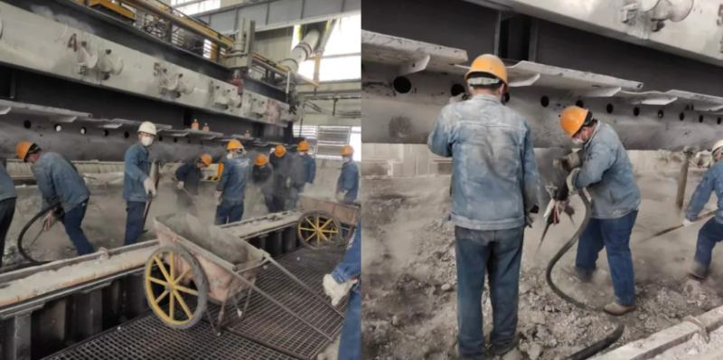 電解槽大修如同外科手術(shù),需在有限停槽期內(nèi)完成數(shù)個部件的拆解、檢測與更換。延誤一天,意味著效益的損失。為搶進(jìn)度,電解車間將人員分成四班倒,可實際干起來,所有人都不約而同選擇了“連軸轉(zhuǎn)”。技術(shù)員小王剛下白班,見夜班人手緊張,抓起手套又鉆進(jìn)了槽底:“早一天啟動,就能多增加1噸多的鋁液!”槽頂排風(fēng)機(jī)的嗡鳴聲中,安全員老周扯著嗓門喊:“防護(hù)面罩戴緊!粉塵吸進(jìn)肺里要命!”他手里的強(qiáng)光手電掃過槽底,光束里翻騰的塵埃像一場無聲的雪暴。十幾米長的電解槽如同被解剖的巨獸,槽殼敞露,陰極鋼棒上斑駁的電解質(zhì)結(jié)痂仿佛鱗片,記錄著它連續(xù)運(yùn)轉(zhuǎn)10多年的疲憊。這是大修的關(guān)鍵戰(zhàn)役—— 7天內(nèi),必須讓電解槽“復(fù)活”。