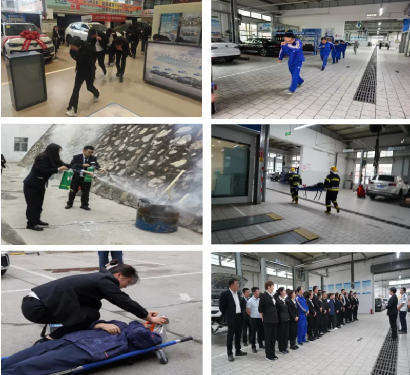 在滅火綜合應(yīng)急演練環(huán)節(jié)。隨著一陣急促的警報(bào)聲響起,“火災(zāi)”迅速蔓延。全體干部職工在聽到指令后,迅速到位,在最短的時(shí)間內(nèi),從辦公室、銷售展廳及售后車間,通過疏散小組人員的口令加手勢(shì),進(jìn)行了有序的疏散,把現(xiàn)場(chǎng)所有人員,快捷有序的疏散到安全地帶。