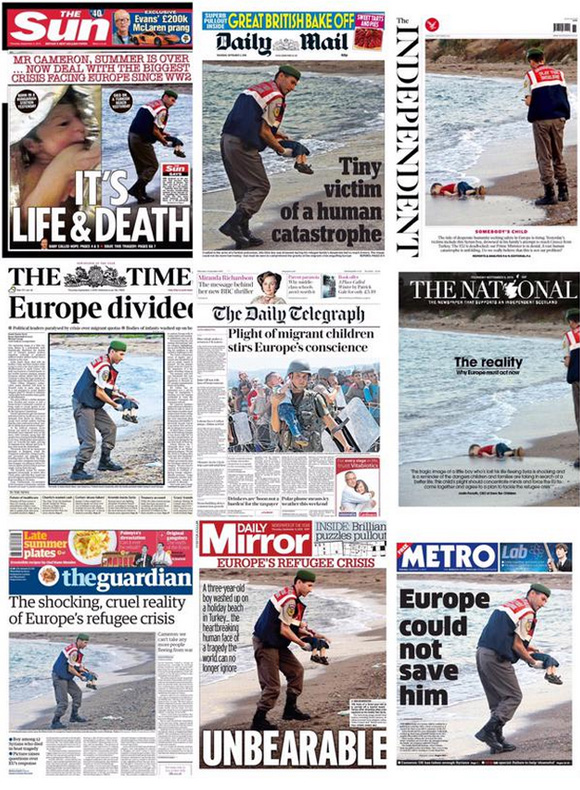 這些照片很快以標簽#KiyiyaVuranInsanlik(沖上岸的人) 席卷Twitter,占據(jù)了歐洲各大報刊頭版。