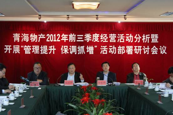 10月12日至13日,省物產(chǎn)集團(tuán)利用2天時間,召開了"2012年前三季度經(jīng)營活動分析會暨開展'管理提升、保調(diào)抓增'活動部署研討會"。所屬各企業(yè)領(lǐng)導(dǎo)班子成員、項目建設(shè)和財務(wù)負(fù)責(zé)人及各部負(fù)責(zé)人、總部員工70余人參加了會議。會議由集團(tuán)總經(jīng)理王玉輝同志主持并作了題為"應(yīng)對挑戰(zhàn)逆勢揚(yáng)、多措并舉后勁強(qiáng)、凝聚智慧達(dá)共識、跨越發(fā)展創(chuàng)輝煌"的重要講話,集團(tuán)黨委書記白家林同志就在活動中發(fā)揮黨組織作用進(jìn)行了動員安排。